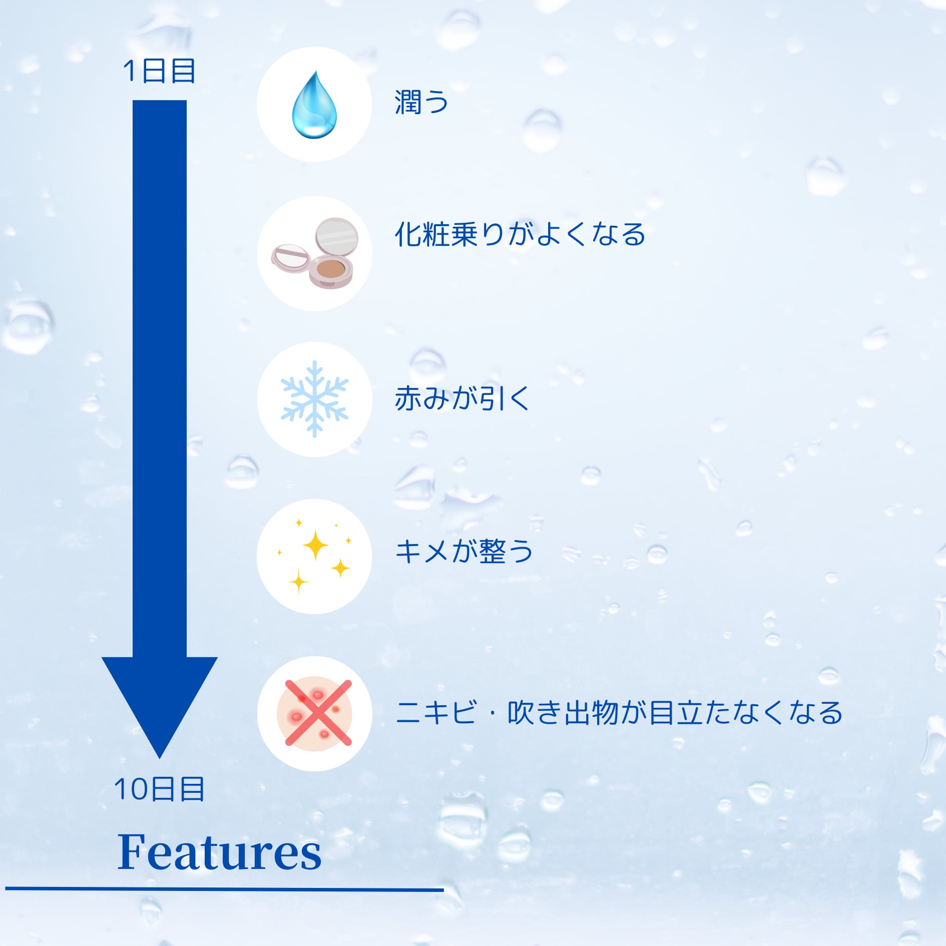 独自のヒト幹細胞培養上清液を使用したこの美容液は、肌の再生と修復をサポートし、健康的で美しい素肌へと導きます!ナノバブル炭酸水を活用し、浸透性と保湿力を向上させることで、肌荒れを防ぎ、しっとりと潤った肌を実感していただけます。